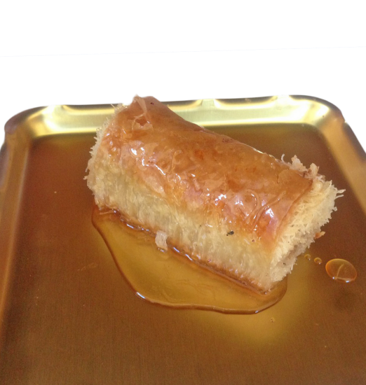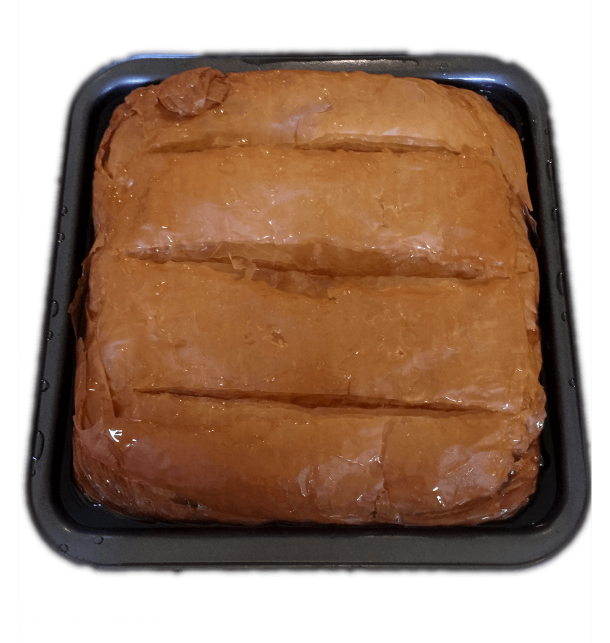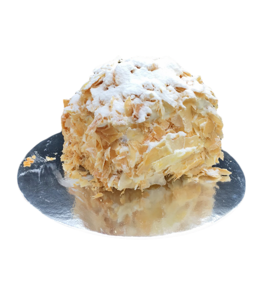 Τραγανή βουτυρένια χειροποίητη καραμελωμένη σφολιάτα με γέμιση κρέμα βανίλια πασπαλισμένο με άχνη ζάχαρη.