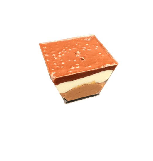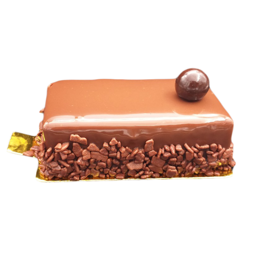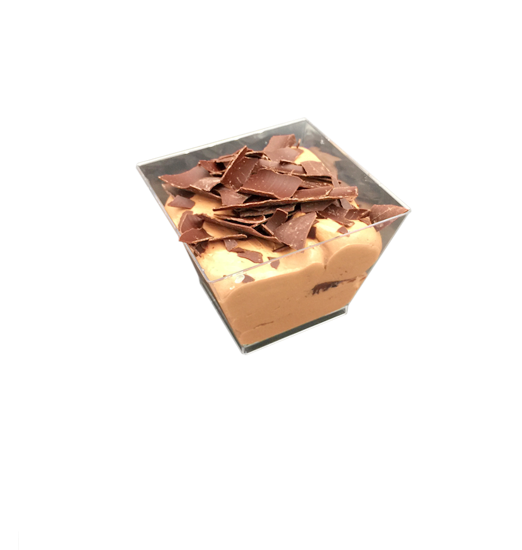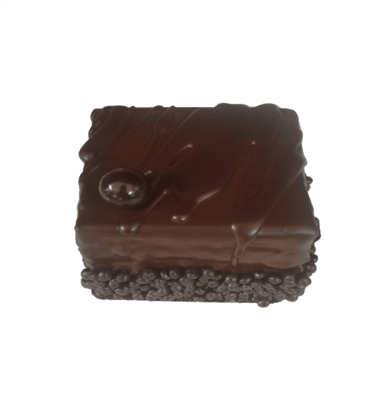 Μους σοκολάτας bitter με μπισκουί σοκολάτας, σοκολατένιο crumble και επικάλυψη bitter σοκολάτας.