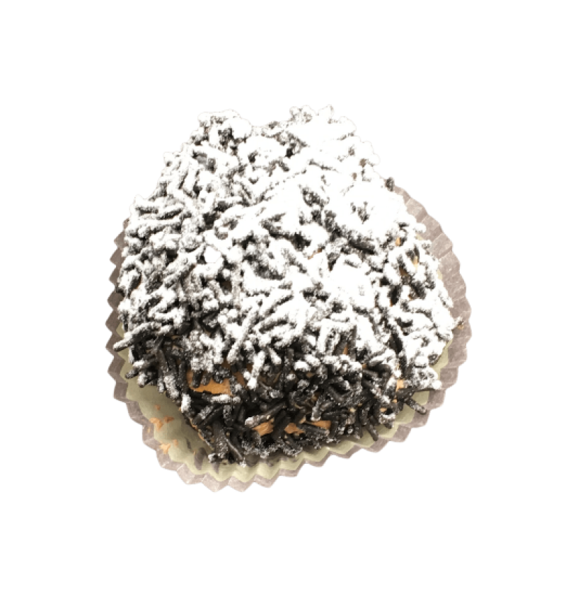 Μεγάλο αφράτο σου με γέμιση σοκολάτα μπίτερ βουτηγμένο στην τρούφα και πασπαλισμένο με ζάχαρη άχνη.